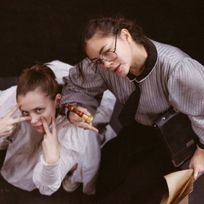 Ez az előadás is azt példázza, mikor a kortárs színház a múltból merít, abban keresi támaszát. A Mejerhold Központ művészeti vezetőjének, Viktor Rizsakovnak két évvel ezelőtt végzett színészosztálya, amely jelenleg „Júliusegyüttes” néven működik, már a Moszkvai Művész Színház (MHAT) akadémiáján zajló tanulmányai alatt elkezdett foglalkozni a Három nővérrel. E művészi útkeresés eredménye lett ez az előadás, amely az egyik legismertebb orosz klasszikust a legkísérletezőbb moszkvai színház színpadán szólaltatja meg. Az előadás legfontosabb célja, hogy felújítsa a Moszkvai Művész Színház stúdió-jellegű működésének tradícióit és folytatója legyen az erre jellemző színészi-rendezői munkának. A Három nővért 1901-ben mutatták be először a MHAT színpadán, majd Nyemirovics-Dancsenko újította fel 1940-ben. Viktor Rizsakov projektje – utalás Nyemirovics-Dancsenko előadására, de már a 21. század kontextusában. És az előadást ugyanannak a színházi iskolának – a MHAT színházi akadémiájának - növendékei játsszák, akik 2016-ban végeztek, és a MHAT 9. stúdiójának tekintik magukat. (Az első stúdiót Sztanyiszlavszkij alapította, a harmadikat – Vahtangov, a „Hetedik stúdiót” Kirill Szerebrennyikov, a 8. stúdiót Dmitrij Brusznyikin)