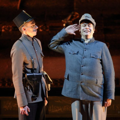 A 20. század elején született és kultikussá vált regény a világirodalom egyik legismertebb népi hősét teremtette meg - Svejket, a kisembert, aki naiv és fanyar humorával, provokatív együgyűségével próbálja túlélni az I. világháború borzalmait. Valerij Fokin előadása e száz évvel ezelőtti történet mai értelmezése. Vajon kicsoda és milyen egy 21. századi Svejk? A világban zajló számos háború akaratlan résztvevője, akit magával ránt az általános szembenállás, a "mindenki mindenki ellen" állapota? Aki elődjéhez hasonlóan megpróbálja túlélni a történelmi kataklizmákat és mindeközben igyekszik megőrizni a józan eszét egy abszurd valóságban? Ez a különös figura, anélkül, hogy elveszítené groteszk együgyűségét és naivitását, napjaink valódi hősévé válik.