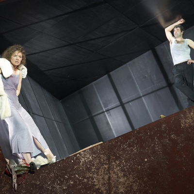 Tennessee Williams klasszikus, 1947-es darabja (amelyből világhírű film készült Marlon Brando és Vivien Leigh főszereplésével) New Orleansban játszódik, az amerikai dél világában. Michael Thalheimer rendező a rá jellemező módszert választja ezúttal is: kiszakítja a művet az eredeti miliőből, és dráma lényegére koncentrál. Pengeélesen mutatja meg az emberi kapcsolatok, a társadalmi viszonyok széthullását, az egzisztenciális lecsúszás végpontjait.