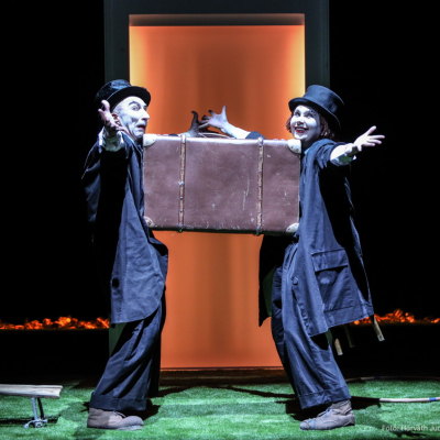 Két kiöregedett, régóta mellőzött bohóc egy állásinterjúra érkezik. Filippo a harsányabb karakter, Niccolo a szelíd bohóc. A sivár váróterem az érvényesülés igyekezetében előbb csatatérré, majd képzeletbeli poronddá, végül egy bűntény helyszínévé válik. A darab remek lehetőség arra, hogy a Bozsik Yvette Társulat mára ikonikussá vált stílusjegyeivel, egy prózai darabból kiindulva, táncszínházi formát öltve, új lendületet és energiákat ötvözve egy groteszk szomorúbohóc-játék előadást hozzon létre, amelyben tükröt tartva magunknak és a világnak megemlékezünk a szeretetről és az elmúlás pillanatairól.