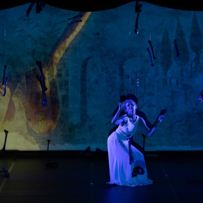 Jan Fabre „Hiszek a szerelem legendájában” című alkotása egy levél formájában írt vallomás, melyben egy férfi szól szeretett kedveséhez. Mélyen személyes és lírai szöveg, amely a szerelem és az elengedés kettősségét vizsgálja. A darab az emberi önrendelkezés legvégső határát érinti: a saját életünk feletti döntés jogát. Fabre műve empátiával és mély tisztelettel viszonyul az élet, a szerelem és a halál misztériumához. Egy estén Lancelot lelép egy hídról – átlépve az életből a halálba. A korláton állva azon töpreng, miként zuhan majd alá élő teste. Vajon lebegni fog, dacolva a gravitációval, vagy elkerülhetetlenül a mélybe csapódik? Szavai szeretett hercegnőjéhez szólnak abban a végső, visszafordíthatatlan másodpercben, amikor átlépi a határt az öröklét felé.