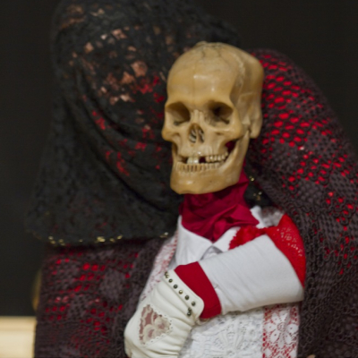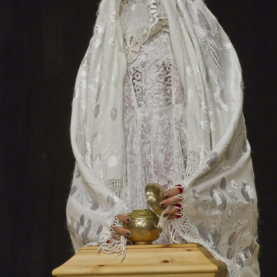 “My face is never visible during the performance of Ave Maria. Most of the time I am hidden under the skull mask of Mr Peanut, and for the rest of the time I am veiled and covered by a big black hat. I represent Death. […] At a certain point in the performance I say: ‘It could be that the dead actress so loved by her colleagues has found a new life. I don't know. Who knows? Perhaps this too is only an illusion!’ Every time I act in the performance I have the illusion that I might find an answer to these questions.”