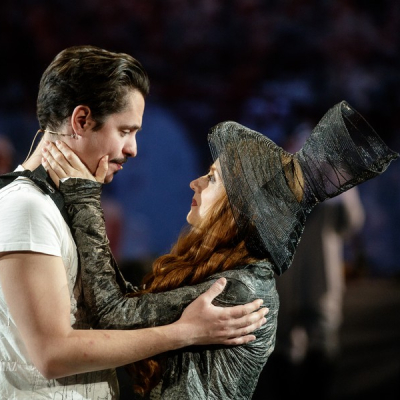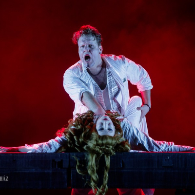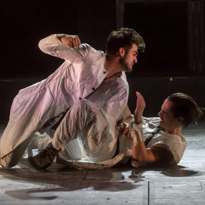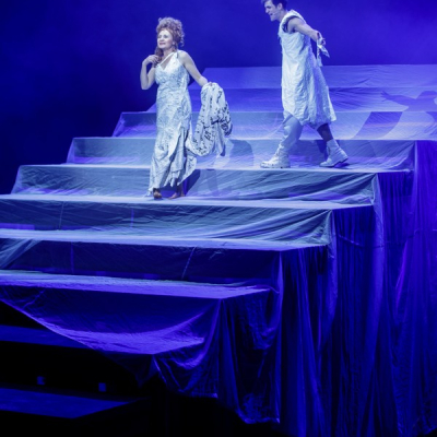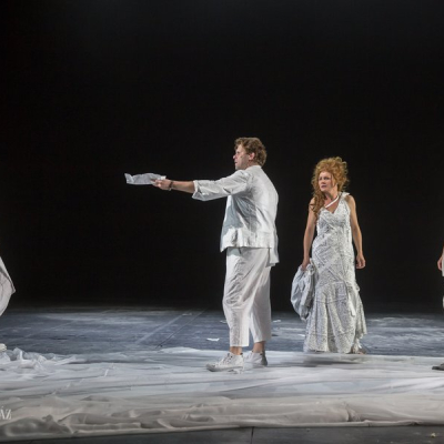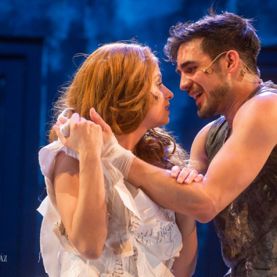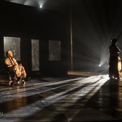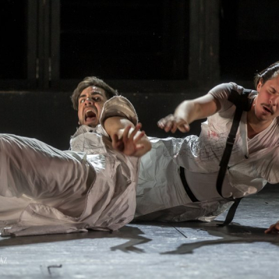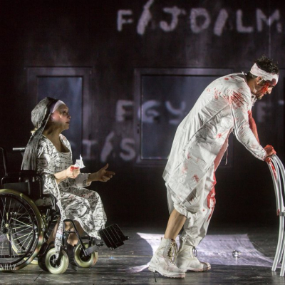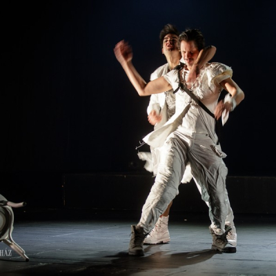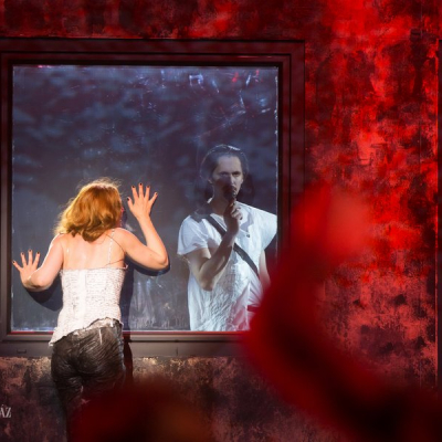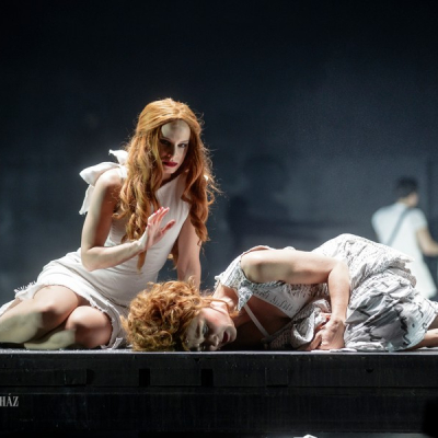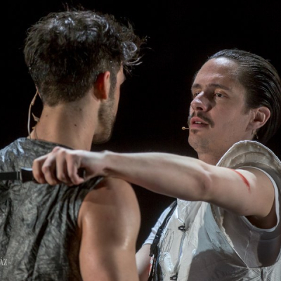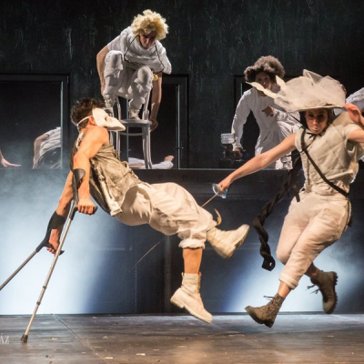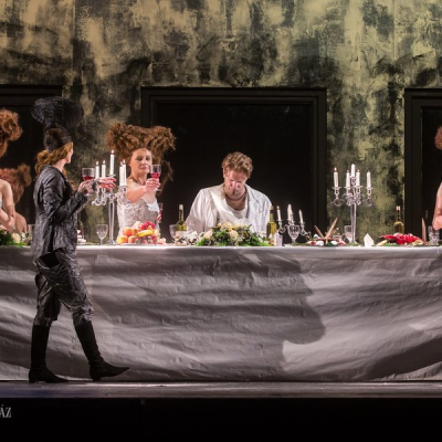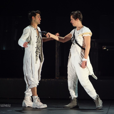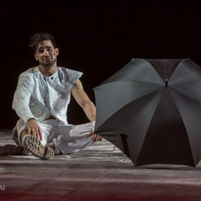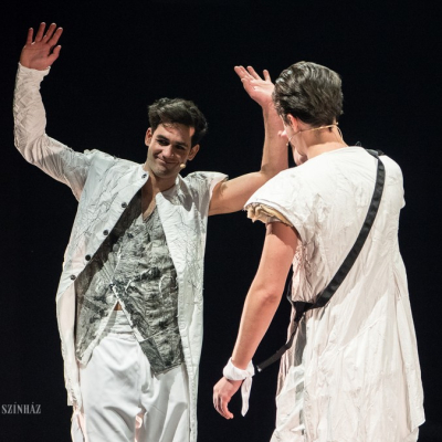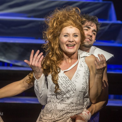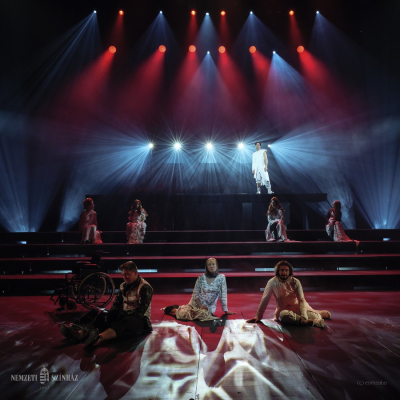 Another distinctive feature of Doiashvili’s production is that he made five actresses play the role of Cyrano’s love interest, Roxane, who all appear on the stage at the same time. The story of the provocative, boasting, and sparklingly witty duelling hero and poet, the emotional and self-sacrificing knight, is performed at MITEM against an unusual visual backdrop and in an entirely new interpretation.