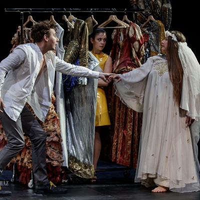 The performance is about social situations, human plots, theatre, love, poetry, futurology, nostalgia, our current world with a link to the world of Beaumarchais. Many things have happened since. We are currently in a rapidly changing world. We face an unimaginable situation. We are on the brink of an age when we must redefine the very concepts of time and space. Consequently, our past, our roots and our memories gain increased importance. But even during this digital revolution there is couple – Figaro and Suzanne – who opt out of the usual ring of plots and gossip. Thanks to the humour and well-conceived play of Beaumarchais we become part of Figaro’s dream, together with him we relive a sliver of the past: we are replaying this crazy day alongside Figaro.