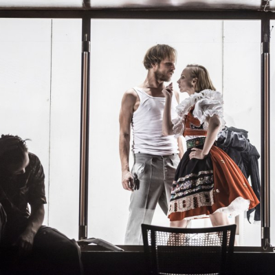 Divadlo Na Zábradli (Theatre on the Balustrade) is a small theater with a long history in the Old Town of Prague. It opened its gates to the public in 1958. In 1962, Jan Grosmann became the director of the company, and soon the theater evolved into one of the most significant workshops in Czech theatrical life. Václav Havel’s early plays, The Garden Party and The Memorandum, were first performed here. Legendary productions came to life on the Divadlo Na Zábradli stage: a rewriting of Jarry’s Ubu Roi and a stage adaptation of Kafka’s The Trial. In 2014, a young group took over the directing of the theater, led by Petr Štědroň, Jan Mikulášek, and Dora Viceníková. They avoid classic plays. Instead, they regularly work with texts originally not written for the stage, creating performances from diaries, correspondences, and epic fiction.