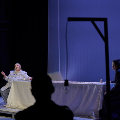 “This play by Géza Szőcs is a historical insight into the collective European and global conscience. It brings historical reality into focus through the fictitious lens of Rasputin. This fiction appears to be the last refuge for a passionate survival in the apocalyptic forest of mankind. It has this childlike desire for world peace, for a situation without killing each other in wars and in society. In the world we create here, all the poetry flirts with reality. All the desires dance with surrender, and all the deeds with philosophy. This drama is just like our contemporary image of Rasputin has become: divine and infinitely human, and at the same time, horrendously historical. It is because the both sacred and sinful figure of Rasputin is incomprehensible. His power is not of the kind that emperors, kings or tsars have, but like the enchanting look of players and swindlers.