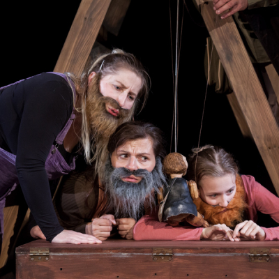 The literary masterpiece inspired us to play with proportions using various forms of puppets, masks and theatrical depictions. The production is inspired by an idea of meeting opinions, attitudes and customs that are distant from us is beneficial and can be fun. This idea is interpreted here clearly for the child viewer and with an overlap for the parents.