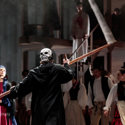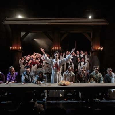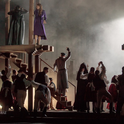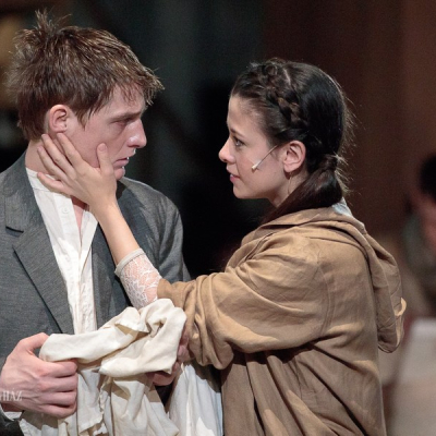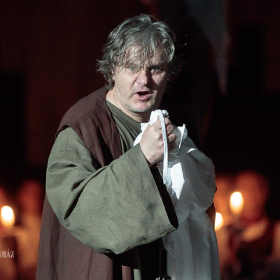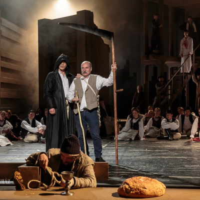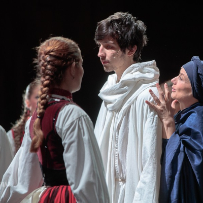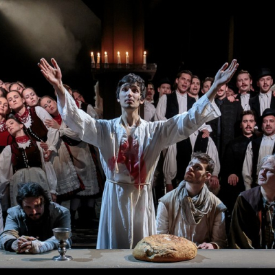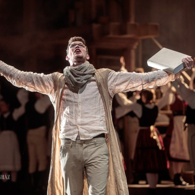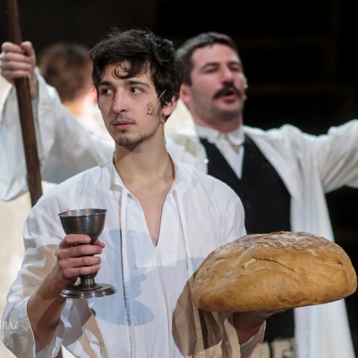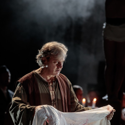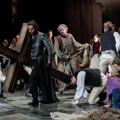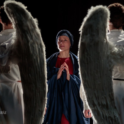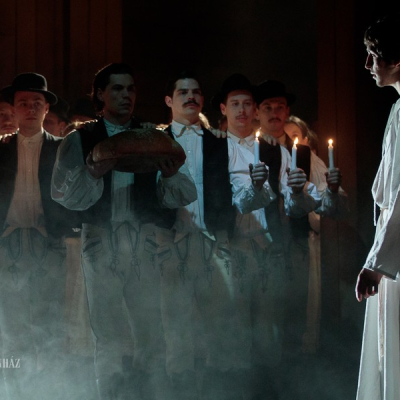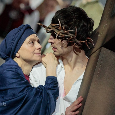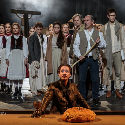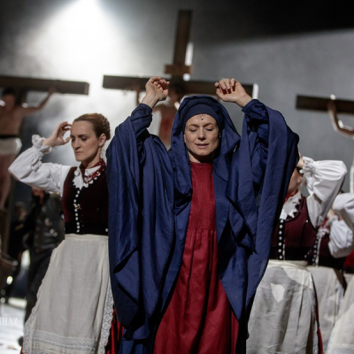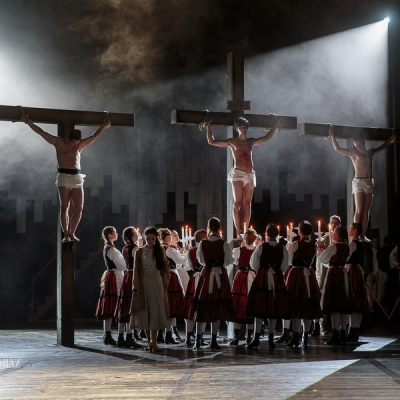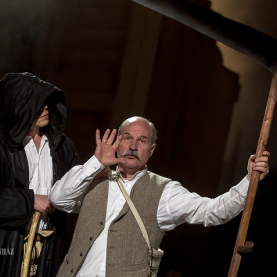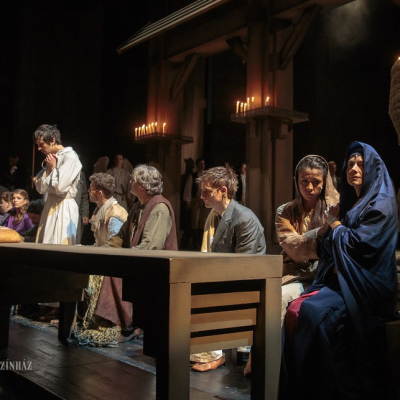From the 1990s onwards, Csíksomlyó became a pan-Hungarian pilgrimage site drawing ever-larger crowds. It represents a spiritual pivotal point on which we believe we can safely build. This Passion of Csíksomlyó of the National Theatre asks questions about the foundations of our Christian faith, and draws attention to the prospects of the European faith community. It aims to create a new stage language in which the 18th century interpretation of the Biblical story and Géza Szőcs’ contemporary adaptation form an integral unit with the religious folk songs performed by András Berecz and the folk-based dance choreography performed by the members of the Hungarian National Dance Ensemble.