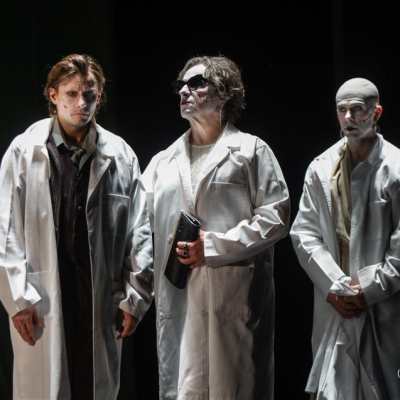- A magnificent all-male cast, with cadaverous faces, almost deformed, despairing, decomposing, on which, because of sweat, the white greyness spreads in a (more obscure) light, perform, in a perfect symbiosis, a "sonata of ghosts" at the border between reality and dream, between day and night". Dana Pocea, Contemporanul Magazine