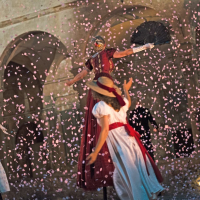 A street performance on stilts, or perhaps something more? An open-air waltz production, the main character of which is dance and the origins of which lie in European culture.