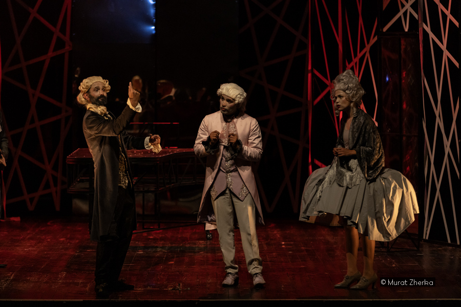 Salieri intrikákkal és számító kegyetlenséggel, a háttérből próbálja aláásni Mozart pályáját és megtörni őt. Mozart közben anyagi gondokkal, meg nem értéssel és egyre romló egészségi állapottal küzd, mit sem sejtve arról, ki áll a nehézségei mögött.
