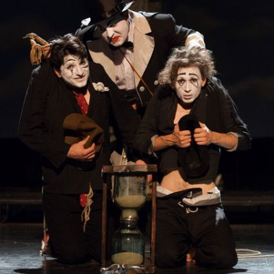 Three decades ago, the Eugene Ionesco Theatre garnered its first successes with a production of Samuel Beckett’s “Waiting for Godot” – performing at the Avignon Festival in 1994, then touring with it in France, Spain and Japan. In the autumn of 2013, Petru Vutcărău, the theatre’s manager, directed young members of the acting company in a performance built upon improvisations in the spirit of the legendary Beckett performance. Godot Improvisations is a production in which the infinite is tantamount to waiting and vice versa. It is a performance about hope. Why improvisations? Because five spirited and enthusiastic young actors, guided by director Petru Vutcărău, created a spectacle built upon improvisations – improvisations on the theme of waiting.